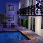 This is converted from @triciamanly’s Desert Dreaming residential lot. It’s now an hotel with mini restaurant and bar. It has 3 bedrooms upstairs, and 4 bathrooms.