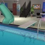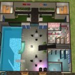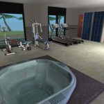 A gym, pool and spa for your fitness-inclined Sims. Enjoy a swim, a coffee and a chat! Built on a small lot so it shouldn’t challenge your graphics card.