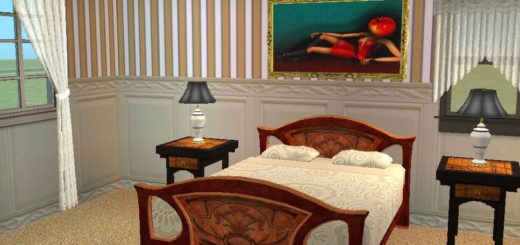 This is a hideous, retro-style, yellow bedroom set for your Sims who think they have taste, but don’t! Find matching wallpaper in our Homecrafter section.