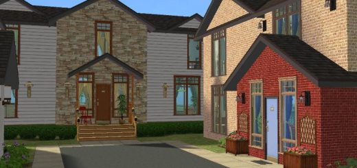 These Tudor-style townhouses are unfurnished and cheap enough for your Sims who are just starting out. They are of identical design, but very roomy. Each has 2 bedrooms and 1 and a half bathrooms.
