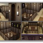 Here is another one of my peasant homes from my custom world, Dracul Isle. This lovely home is a step up for most peasants who can afford to move here. This 2 bedroom-2 1/2 bath home is perfect to start that new family and enjoy the finer things in life. This home has a living room, staircases at each end of the downstairs, an open concept kitchen and dining. The kitchen has a fireplace in it. There is a half bath available off the living room. The upstairs has a master bedroom with bath, a nursery with a bath and there is a place for chess and art available. There is a small garden area outside.