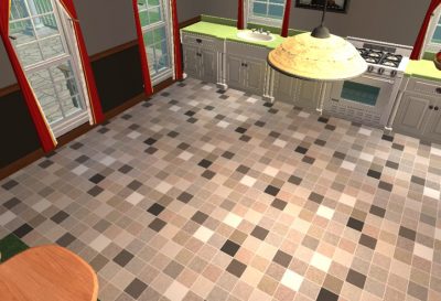 Now, close down Gimp and Homecrafter and fire up your Sims 2 game and place your new floor in a lot to see how it looks: