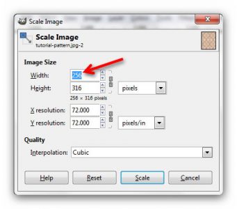 Change the height and width to 256 then click ‘Scale’: