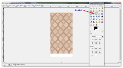 Now for the tricky part. ‘Edit/Paste’ again so you paste the copied image onto the new one. Now you have 2 images, 1 on top of the other. Now you need to move the second image down so the pattern aligns with the first one: