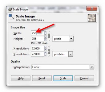 We’re going to re-size the image to 256×256, standard flooring size for Homecrafter. From the top menu click ‘Image/Scale Image’: