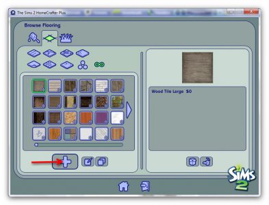 In the next screen you’ll see all the flooring you have installed in your game. To create your own, click the large plus button at the bottom: