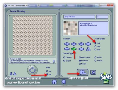 Here I am with my hopefully seamless tile images ready to go and Homecrafter does not want to work for me! What a shame, it looked so simple to use. Now I’m hoping making floors with SimPE is not too much more difficult.