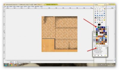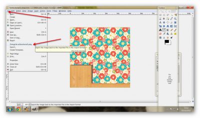 Click the selected part of the image to fill it, and repeat the process for each part of the image you want to recolour with the pattern. You can also recolour the wood parts the same way. Then select the ‘File’ and overwrite option to save the new image:
