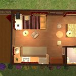 I’m starting a series of tiny houses that I’ve found on the internet. Here is a small cabin with open-plan interior and space for a double bed. It’s based on this image, but it’s not exactly the same: