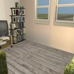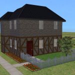 From my Tudor Town neighbourhood, this is a very basic, 2-bedroom starter home, perfect for a single Sim or single parent etc. There’s no custom content, but there’s tons of outside space for re-development, garage etc.