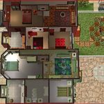 There are 4 apartments, all working. Each has a parking space out front. All have the same floor plan just a little different layout in furnishings. As usual with me they are colour coded, Beige, blue, red and green, with furnishings to match. Each has their own fenced in garden.