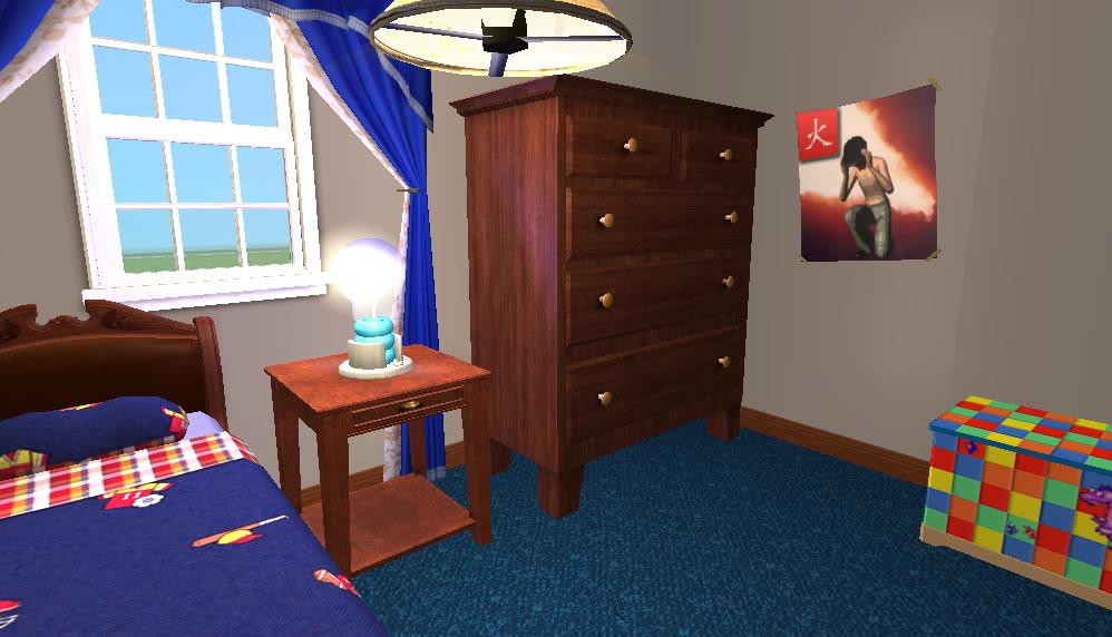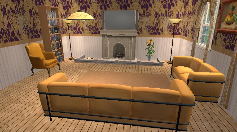 Custom content are flooring, wallpaper, bedding and curtains, all by me.