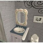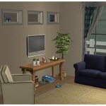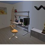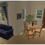 I love the bits of angled furniture here and there, they make the house look so lived in and realistic. And the sockets and floor vents are such a perfect touch too! The kitchen is my favorite room – I really like those counters and cabinets!