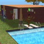 Simple community hangout for your Sims, with plenty to do. There are computers and bookcases for study and fun, there’s a pool, gym equipment, dart board, a store…everything your Sim could want for a good day out. Best of all, it’s set on a small lot with no custom content so should be graphics card friendly. ![]()