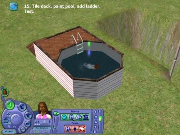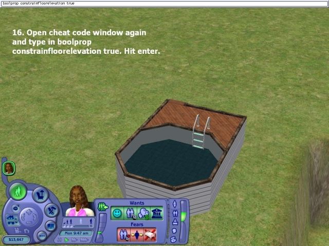 Hi, I saw this thread and would like to ask you. Isn’t this methode causing an old issue where sims suddenly start to walk under the floor level when they leave the pool? Explaining, when you build a false lake on the ground and place ladder and diving board, this issue can happen and is very difficult to correct. I noticed that you placed only the ladder, not the diving board. Is the diving board that causes the issue? Sims don’t get autonoumous in the pool thru the ladder usually. I suppose the issue is caused by the fact that a swimming-pool is a separated room, accessed thru a portal, connected thru the ladder. Not very sure how it is connected to the diving board.
