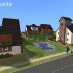 Alpinloch City Planners invite you to enjoy the conveniences of downtown Alpineville. This little village offers almost every Sim need in one place: clothing boutique, groceries, restaurant, clubhouse and pool, and though Sims aren’t really spiritual, we can pretend they are in the church which also has room for you to bury your dead. Welcome! Come make your home here in Alpinloch!