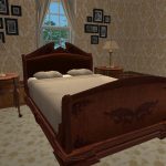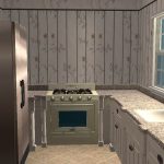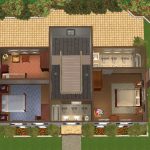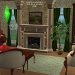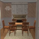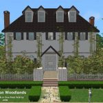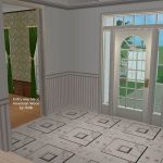 Today I present an American colonial style house with 3 bedrooms, 2.5 baths, formal dining room off the kitchen, lounge with fireplace, and amazing floors and walls by American designer chilili, which make the house look light, spacious, and whimsical. Your sims will enjoy the outdoors on the shady back patio, perfect for barbecues, jacuzzi, or chess. A pool won’t work unfortunately since almost the whole lot is a foundation. The shell paved driveway may be able to be functional with move_objects on, but the builders can’t guarantee it. A young couple, aptly named the Jeffersons, have just moved in to a model like this and were seemingly disappointed in the smoke alarm even though it’s the same in all sim houses. Hopefully you will have Sims who will be pleased with the smoke alarm. As for the rest of the house, it had high marks in environment.