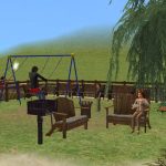 Large community lot with pond, swings and BBQ area.