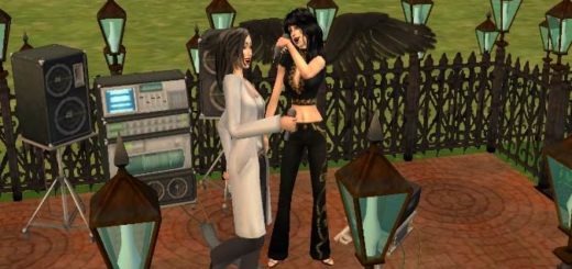 Samantha and Alex Storm singing on her back yard stage. I created her house and the stage.