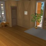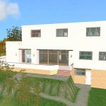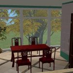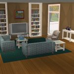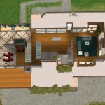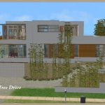 Bay Tree Drive criss crosses Modern Second Island, a neighborhood of ultra-modern sims who love to be on the cutting edge and live only in modern houses. This lot combines a rural feel with modern as you walk up a gravel road to reach the front door and the whole place is surrounded by bay trees and bamboo. The modern picture window with crossbar lets in lots of natural light and views of the bay trees. Upstairs you have two bedrooms and two baths and a little rooftop garden/sundeck. The house also includes pool and base game garage which should be easily convertible to functional. Modern Second Island sim, Ginger Baylor, is living in a model like this one. She is now platinum, having made friends with Lincoln James and Mack Motley by serving sandwiches and gelatin and playing some chess. While I can’t guarantee platinum status for any sim who lives here, I can guarantee a comfy, easy-in and out house!