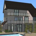 Here’s another house for your modern sims! It hopes to be futuristic looking and cutting edge. The house is three stories with four bedrooms and 3.5 baths. The downstairs is open and spacious with lots of windows to let in plenty of light. We want your sims to feel free and unencumbered! The bedrooms are on the second and third floors. There is also plenty of outdoor living space including a pool. Move in a new group of sims and let them live “beyond the future” (whatever that means!)