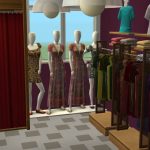 It’s one of those perfect, one stop lots where sims can have fun, buy groceries, and a new outfit all at once! The clothing boutique looks very realistic, and I love the way you put the screen behind the manequins. This is for a challenge right?