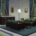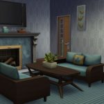 Small living room with blue-themed decor.