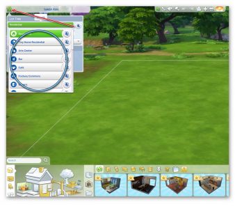 First of all, open up your game and select an empty lot. The top-left of the game has a small house icon, this is where you can select the kind of lot you want to build: