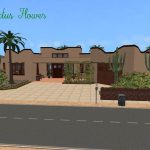 For your desert neighborhood, I present Cactus Flower, a sprawling, spacious 3 bedroom, 2.5 bath home all on one floor. The diagonal base game garage is for effect only (sorry). The lot includes sparkling pool and lots of desert landscaping which will be a nightmare for sim gardeners, but thanks to karen lorraine for finding the following mod site to get rid of gardening:
