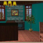 Decor is traditional southwest and includes custom walls, floors, super modern built in bookcase mesh, and art recolors by me or millyana.