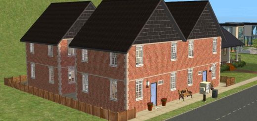 4-house development, unfurnished. Each house has 2 bedrooms, a single and a double. There are 1 and a half bathrooms, but no gardens.