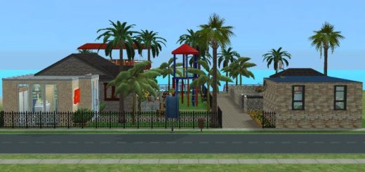Sims 2 community lot with bowling alley, coffee shop and games areas, inside and out.