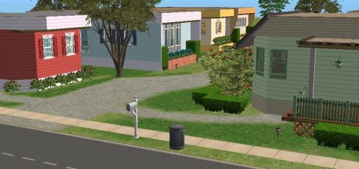 Sim builders wanted to give this plain white house an elegant name, hence Chez Blanc. Here your sims will have two bedrooms, and 2.5 baths, large formal living room, cozy family room with “window seats”, dining room, large kitchen, carport, and three sundecks.