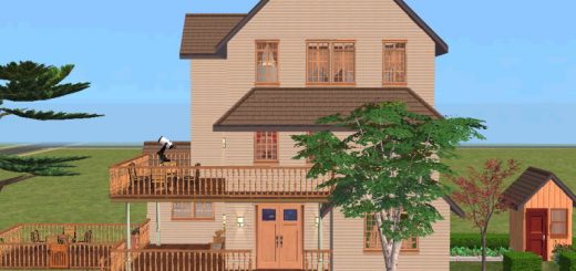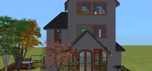 Compact but spacious Tudor-style home with 6 bedrooms and 3 bathrooms. Your Sims will have to make their own entertainment, as there’s no T.V or games consoles, but that fits in with this olde-worlde style.