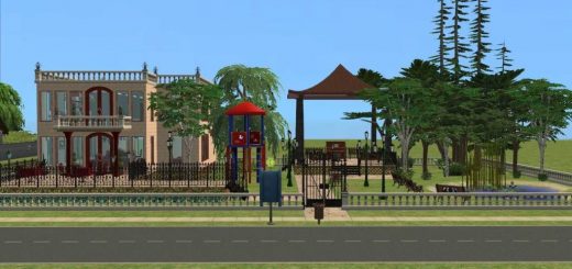 Just a small community lot for your Sims to dine, have fun and meet others. The restaurant consists of a main eating area downstairs, with a fast-food diner and toilets upstairs.