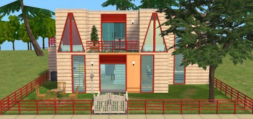1-bedroom, 2-bathroom, modern home with simple landscaping. Perfect for your newly-wed Sims!