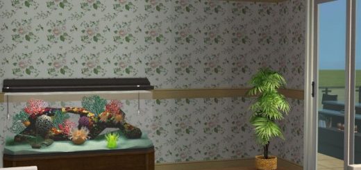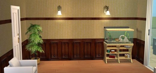 Vintage wallpaper with white panelling. This can be found under the panelling section of the build mode wall coverings section of the catalogue.