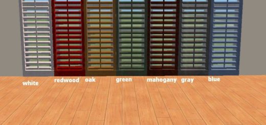 Here are recolors of my floor to ceiling shutter. I have also reworked the mesh so that it is now a curtain and does not require any cheat codes to place.
