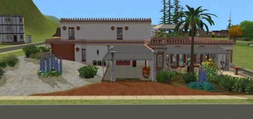 This large Spanish style house has it all, lots of rooms, large back yard with pool and jacuzzi, elegant furnishings, and it’s all for our beloved and sometimes forgotten base game Sims.