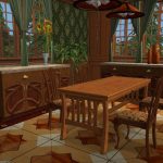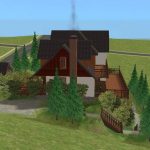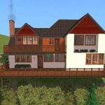 Another mountain retreat in Alpinloch, Chalet Robert has 3 bedrooms, 2.5 baths, and is built on a sloping lot. It looks best on a lot that slopes downward in the back such as in Blue Water Village, or at the foot of the mountain, at the end of the road in Alpinloch. Your back deck has wide open views, and sims will enjoy cozy, but spacious living areas. Come to Alpinloch!