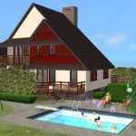 Sim builders have recently acquired several tracts of land in Alpinloch, a rural, unpopulated region of Sim World (at least in my game!) This region has numerous roads with great potential, although most of the lots aren’t level. Chalet Virginia is a large family home with 4 bedrooms, 3.5 baths, living room, play room, open concept kitchen and dining, walk-out basement, and kid friendly backyard with pool and swings. Private master suite is on the second floor, with kids’ rooms in the basement, not great in the real world, but perfectly fine in Sim world! If your sims need a great place to have a big family, this is it!