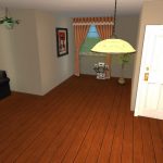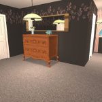 The rooms upstairs are all good sizes, so this house could probably be refurbished to take an extra bedroom or two. The master bedroom has a dressing room and en-suite half-bathroom off the side of it, and the other big bedroom is currently being used as a recreation room. Great for when your Sims have their friends over!