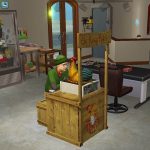 Well, there was no Chicken Checkers available, so I decided to create my own. It is my humor and has nothing to do with EA once I’ve never seen the original object, so I have no clue on how it worked. When you see the picture, you will think “Blah! Lemonade selling?”. No-No! I used the meshes of the lemonade thingie in the lack for anything better once I want to use my own objects. It deals on 3 independent objects that can be used totally unrelated. I made a table, cloned from the seasons country table and meshed as you see. The chair is also independent and is cloned from the Base game Plastic chair and is shaped as the wood box of the same object. I needed it so and you will see why if you try the object.