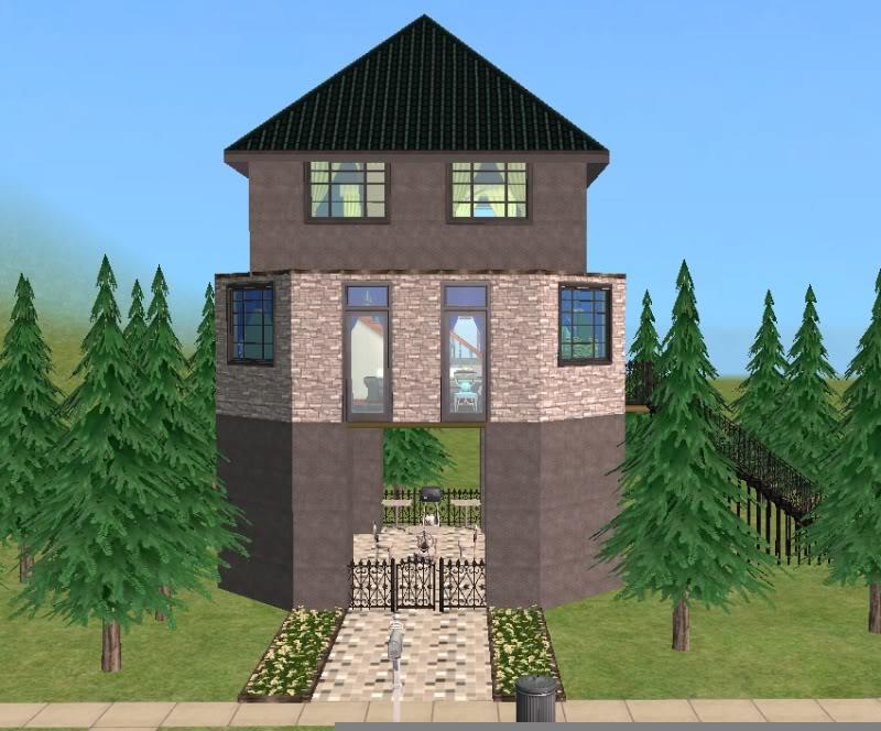 This unusual home would be perfect for a single Sim, or two who want to share. Custom content is the basement flooring, by me