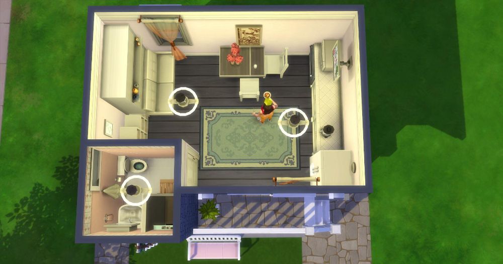 This is a tiny, compact home using the new drop-down beds for the Sims 4 game. I’ve listed one bedroom, but in fact the bed is in the open-plan living space.