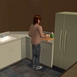 NB: It is a little bit difficult to place the corner counter because it has to be placed 1 tile from the diagonal wall. In order not to block other objects, I made it to behave like a rug, so the game will believe it is a carpet. 😉