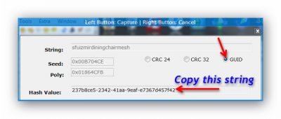 In the box that pops up, select ‘GUID’ and copy the string from the text field. Paste it into the ‘Value’ text area: