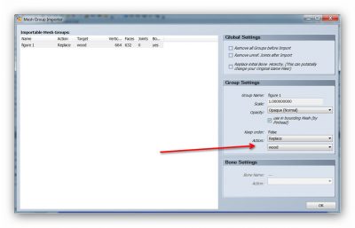 Once your meshes are created and mapped, open up SimPE and the file you want to edit. Import the first mesh, in this case, the wood:
