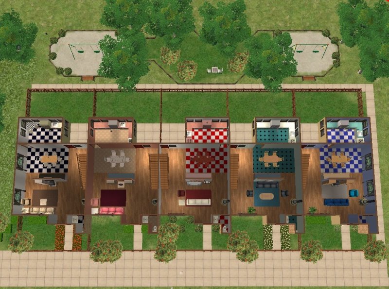 In the Croydon district of London (I’ve been researching!) your sims may find a flat to rent in this modern building. The architects had kids in mind when they made a green belt park in the back instead of parking. (I made that up, not based on research) They are hoping that the tenants will use public transportation although there is no bus stop handy. Your base game sims will be all over the place of course, so let’s hope they like the neighbors. Apartment Life will really make this a better lot to play. Either way, good luck to all!
