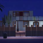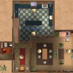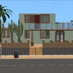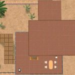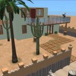 Base game desert home with 3 bedrooms and outside BBQ area. The only CC is the drive gravel by me.